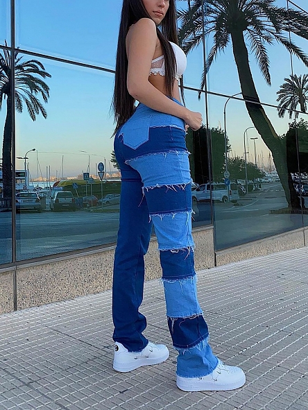 Damen Ausgestellte Jeans mit Kunstperlen FH222